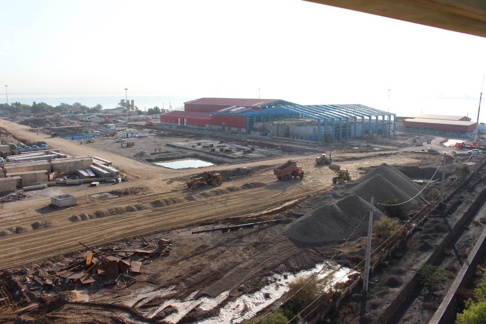 عملیات اجـرایی این پـروژه شامل خاکبرداری، تحکیم بستر، ساخت مخازنذخیره آب شیرین، ساخت فونداسیون های تجهیزات و سوله، پوشش دیوار و سقف با ساندویچ پانل ، محوطه سـازی و اجرای کانالهـای جمع آوری آبهای سطحی و زهکشی آن مجموعه می باشد.